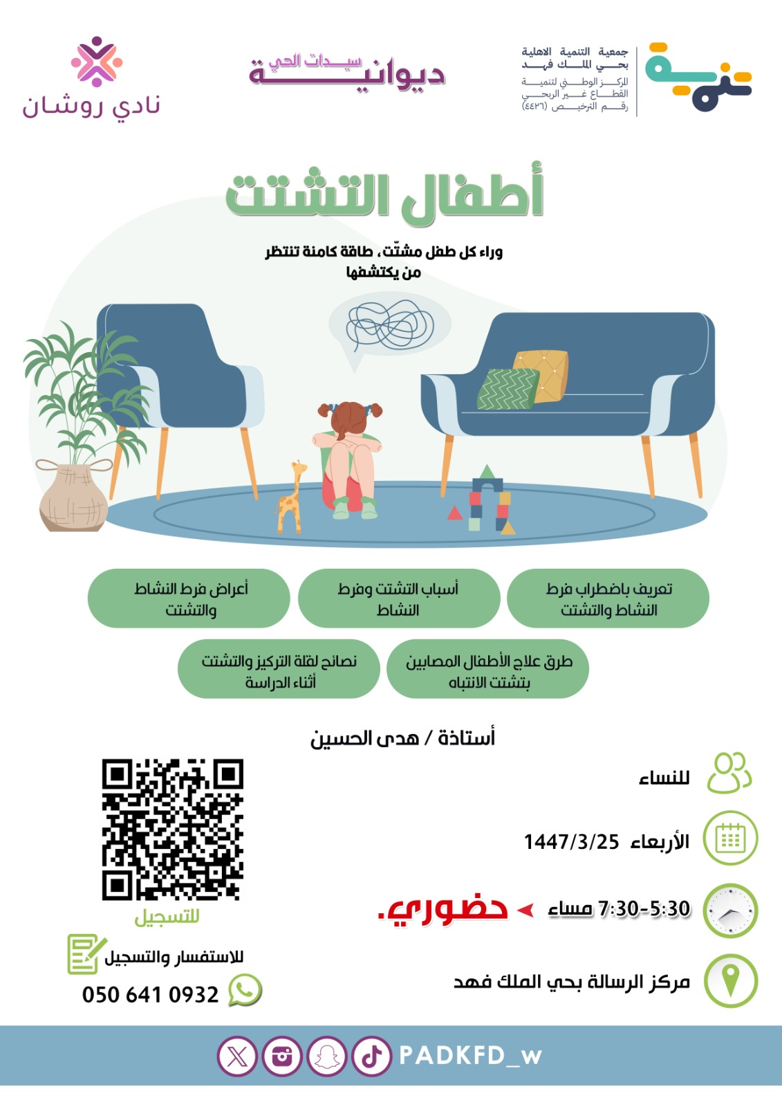 📍حضوري في مركز الرسالة للفتيات – حي الملك فهد بالرياض.